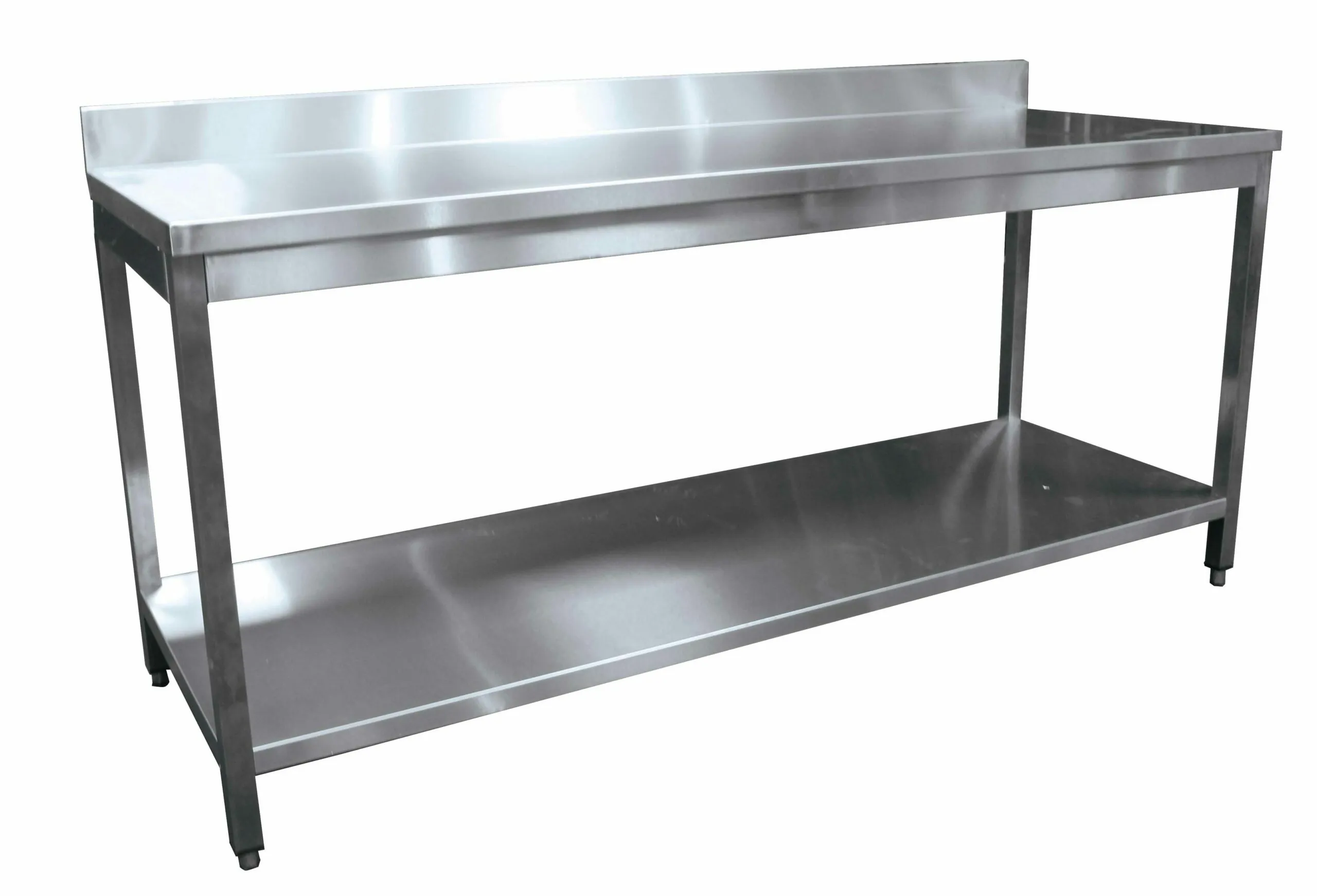TABLE DEMONTABLE ADOSSEE AVEC ETAGERE, PIEDS CARRES, VERINS INOX